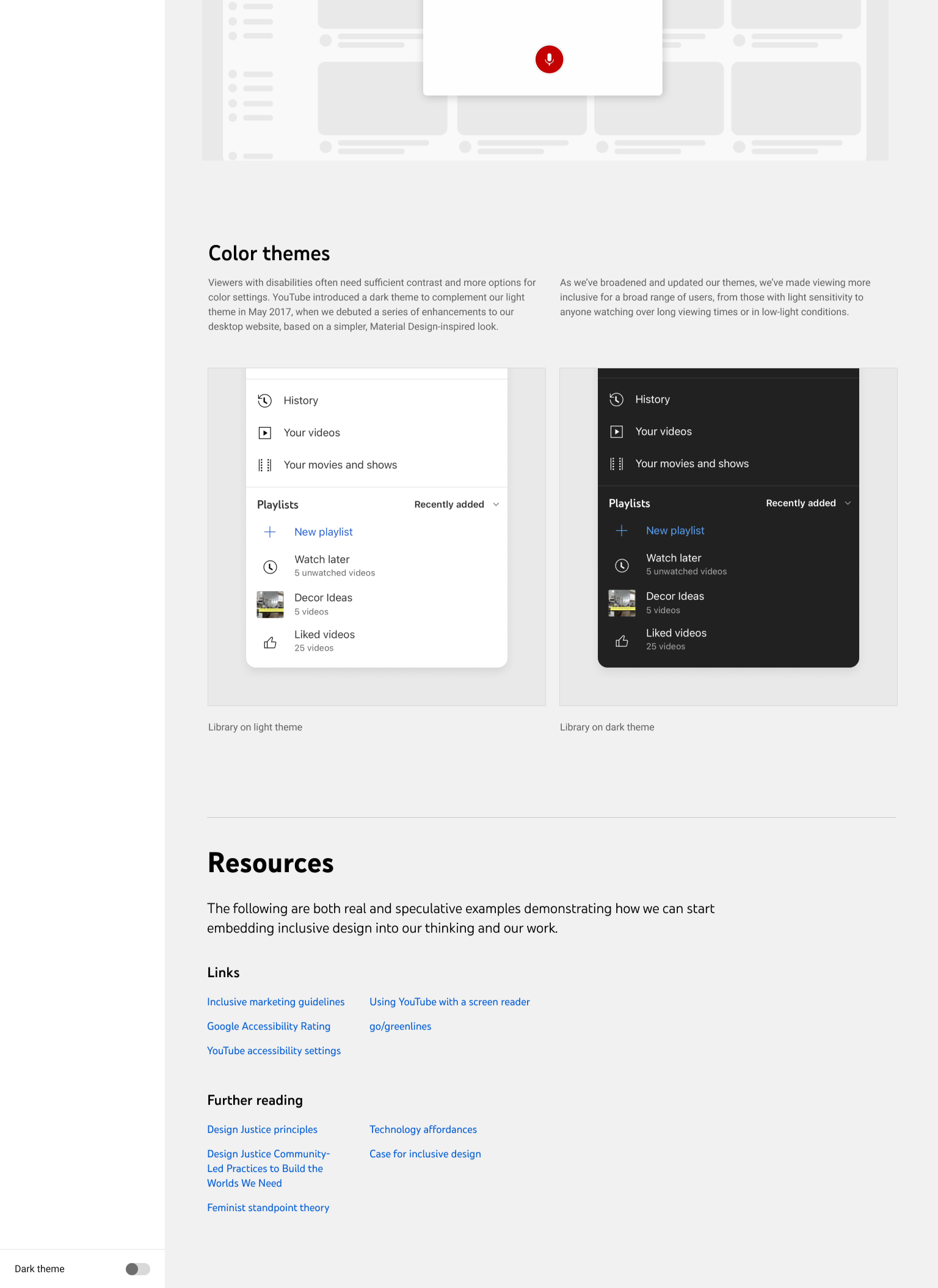 INCLUSIVE DESIGN INITIATIVE AND ROLLOUT FOR YOUTUBE STANDARDSThe primary objective was to conceptualize, conduct research, and develop an Inclusive Design chapter for YouTube Standards for the larger YouTube Organization to refer to for foundational guidance and best practices.